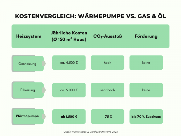 Sparen Sie bis zu 65 % Heizkosten im Vergleich zu herkömmlichen Öl- oder Gasheizungen.